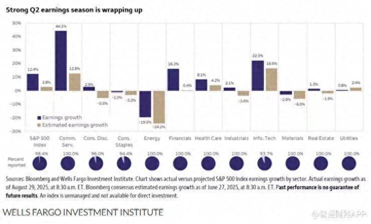 富国银行全球投资策略师Douglas Beath在报告中指出,标普500指数成分股中,消费公司二季度财报表现参差不齐,反映出关税不确定性已经开始影响消费者的购买决策。数据显示,截至目前二季度财报季即将收尾,消费必需品和可选消费两个板块的盈利增速均落后于标普500整体水平,且大幅低于科技和金融等板块。
