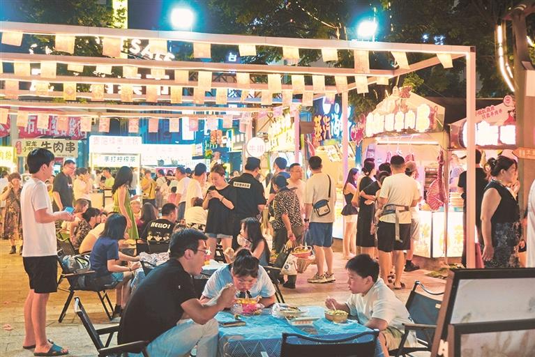 夜晚的马岭河夜间文化旅游消费集聚区游客如织。 贵州日报天眼新闻记者 杨雯 摄